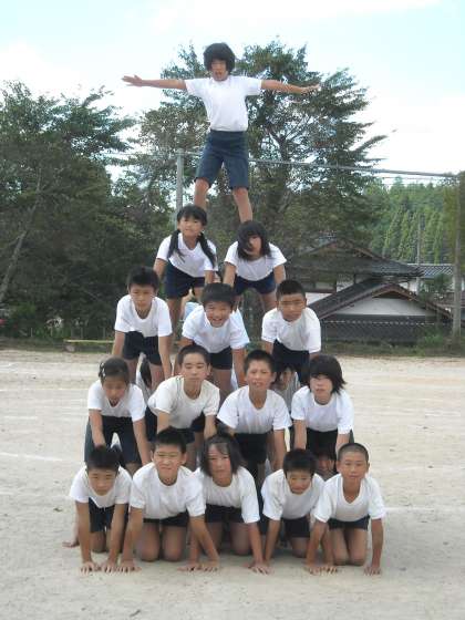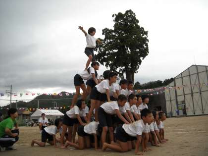 組体操の最後に、5・6年みんなで、5段ピラミッドを建てました。