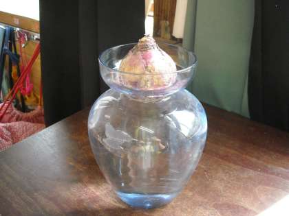 また,教室では,ヒヤシンスの球根を水栽培しました。根っこが出てくるのが楽しみのようで,「根っこまだかな。」と今日水につけたところなのにのぞいていました。