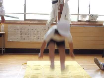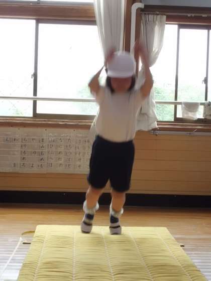1年生は,6年生と一緒に回りました。6年生に場所や上手なやり方を教えてもらいました。これは,立ち幅跳びの様子です♪