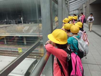 京都駅では,電車が走る様子やいくつもの線路が並んでいる様子を