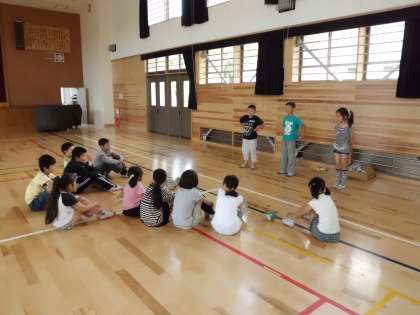 学級活動で話し合って決めたオリンピックを開きました。議長団の開会の言葉で始めて行きました。