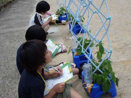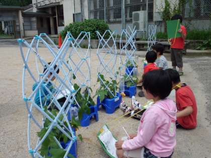 葉っぱの数も増え,大きくなってきました。つるには,細かい毛がたくさん生えていることや,ぐんぐん生長していることに気付いていました。