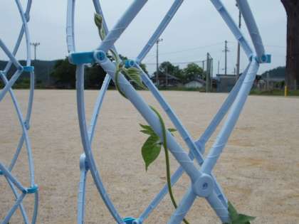 朝顔がぐんぐんとつるを伸ばしています。