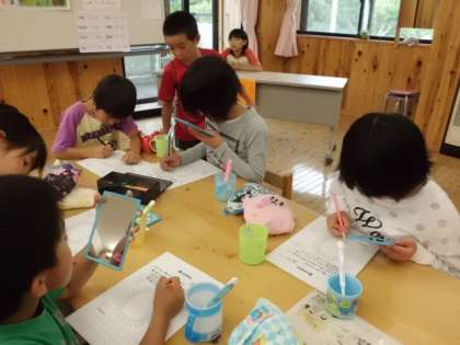 6月18日から,給食のはみがきのあと各学年ごとに歯の染出しをしました。