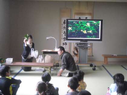 今日の朝会では全校合唱のあと,樋口先生から花の写真を見ての「秋の実」見つけクイズをしました。