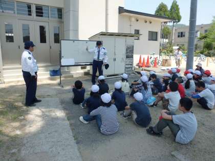 低・高に分かれて自転車教室が行われました。子どもたちは,交差点での一旦停止の仕方や横断の仕方など,安全な自転車の乗り方を真剣に学んでいました。これからも事故のないように安全な自転車の乗り方を守ってほしいと思います。