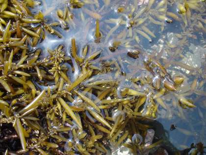 皆さんお馴染みのひじきですが,もともとはどんなものかご存知ですか。下の写真がそうです。みさきの家に行ったときに撮ったものですが,子どもたちは,「えっ,これがひじき?」と驚きます。色は黒くないし,50〜60cmもある長い海藻ですから,食材として目にするひじきとはずいぶん違います。