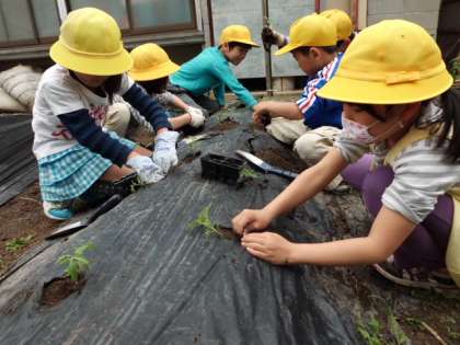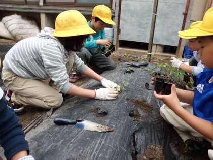 トマトの苗を植えました。