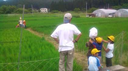 火曜日にみんなで頑張って田んぼの雑草抜きをしました。