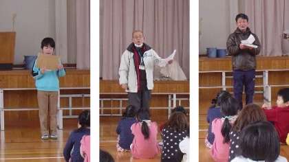 春来いフェスタの練習では,立つ位置の確認と声を出す練習をしました。