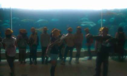 午前の二つ目の見学地,須磨海浜水族園です。4年生の時に鳥羽水族館に行っていますので,子ども隊には珍しさがないかも知れませんね。