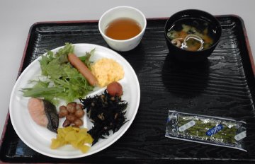 食堂にて朝食を食べています。メニューはというと…。