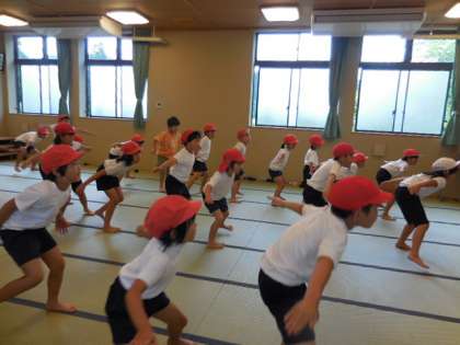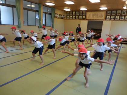 1・2・3年生合同で,運動会の表現運動の練習を開始しました。1回目なので,基礎の動きを覚えました。迫力のある音楽で楽しく踊っていました。運動会に向けてがんばろう!!