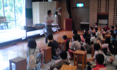 午前の活動,「クラフトに挑戦」です。講師の先生のお話を聞いています。
