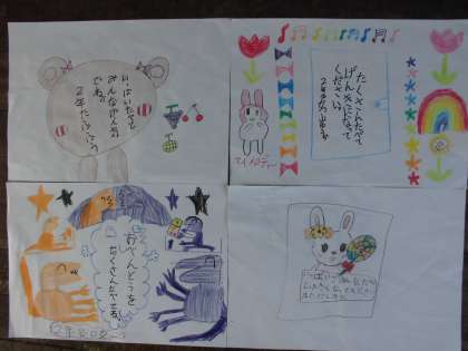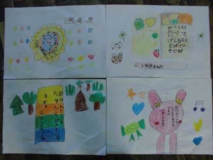 そこで,翌週に,地域の高齢者の皆さんが喜んでくださるように,願いを込めてお弁当の包み紙を作りました。