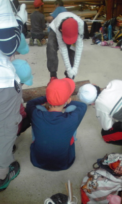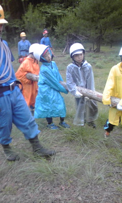切った木を運び出し、今度は杉丸太を自分の好きな長さにノコギリで切ります。