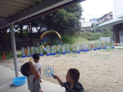 毎日の活動の息抜きに,シャボン玉あそびをしました。