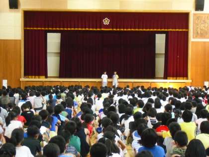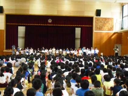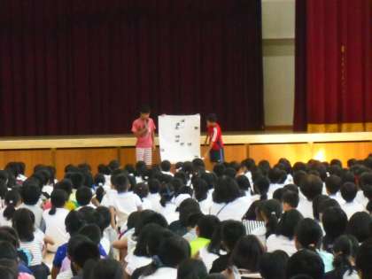 各委員会からのお知らせや夏休み前・夏休み中に書写や絵画,スポーツなどで頑張った人たちの表彰もありました。
