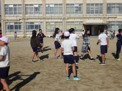 体育委員会企画のドッジボール大会に向けて,練習しています。