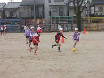 4年生では,体育の時間にサッカーをしています。