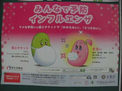 インフルエンザが流行っています。症状のある人はマスクをして、うつらない・うつさないように気を付けましょう。咳やくしゃみのときは、ティッシュなどで口と鼻を押さえましょう。汚れたティッシュは、すぐにゴミ箱にすてましょう。咳やくしゃみを押さえた手は、すぐに洗いましょう。「せきエチケット」を守りましょう。