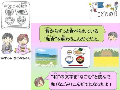 京都市の学校給食には,毎月1回【和献立(なごみこんだて)】の日があります。和献立は,昔からずっと食べられている“和食”を味わう日の献立です。