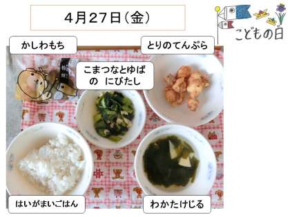 こどもの日に食べられるかしわもちは,子どもたちの健康や幸せをねがって食べられています。