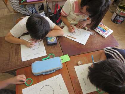 今回はさなぎを観察しました。さなぎの色や形,大きさを注意深く観察していました。