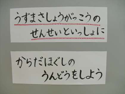 道具を使った体ほぐしの運動に取り組みました。まず初めは棒を使ったものです。バランスをとったり,ペアになって棒が倒れる前に相手の棒まで走ったり。