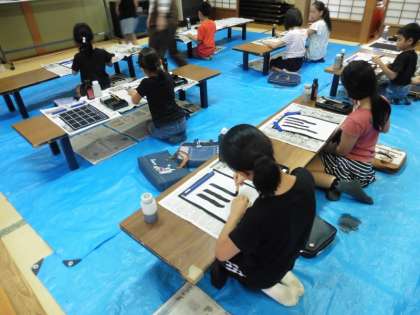 毎週,和室で書道部の活動をしています。