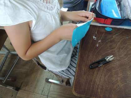 子どもたちは,丁寧に縫ってきました。