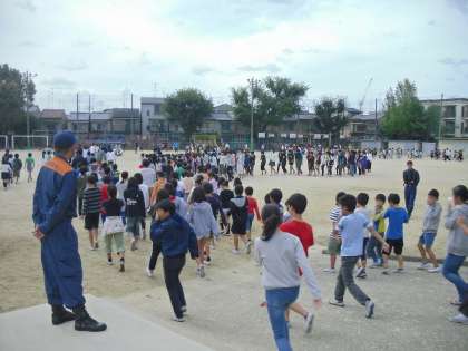 12日(金)には避難訓練がありました。地震からの火災という設定で,教室内での避難行動をしてから運動場に避難しました。みんな静かに落ち着いて避難することができていました。