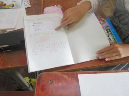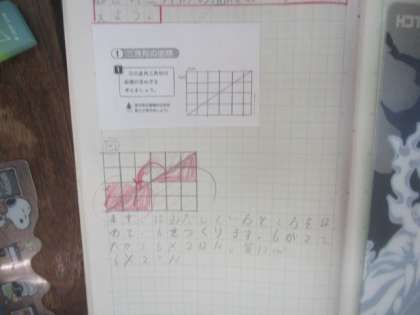 今日は長方形・正方形の面積の求め方を使って,直角三角形の面積の求め方を学習しました。自分たちで,こうしたらわかりやすいかなと交流しながら考えることができました。
