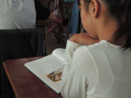 この時間では,一度「大造じいさんとガン」を読み,内容の確認をしました。