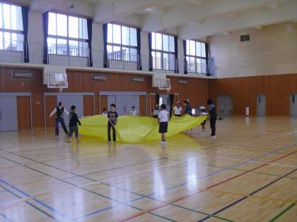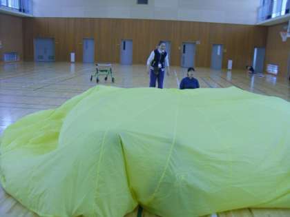 今日は1時間目に西総合支援学校の友達が,一緒に勉強しに来てくれました。その後は合同運動会に向けて走る練習をしたり,バルーンの練習をしたりしました。みんなで息を合わせてバルーンを楽しく動かしました。