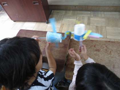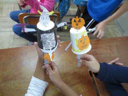 鳥が羽ばたいているところ!オバケがにょろにょろ出てきたところ!と,楽しくイメージを膨らませて作ることができました。