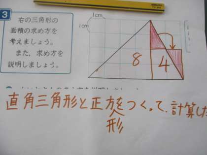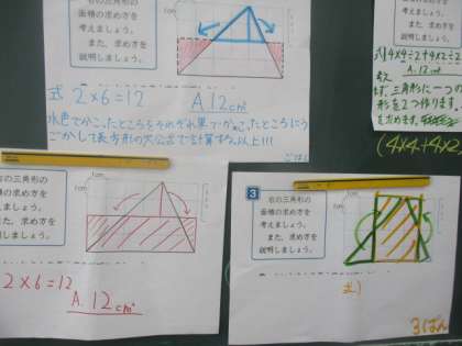 算数の面積の学習では,既習事項を使って工夫して問題を解くことができました。家庭科の学習では,調理実習の計画を立てています。山の家に向けて,山の家のリーダーが中心になって,手順の確認などを行いました。