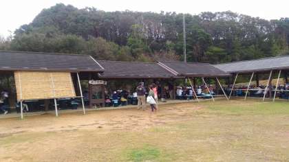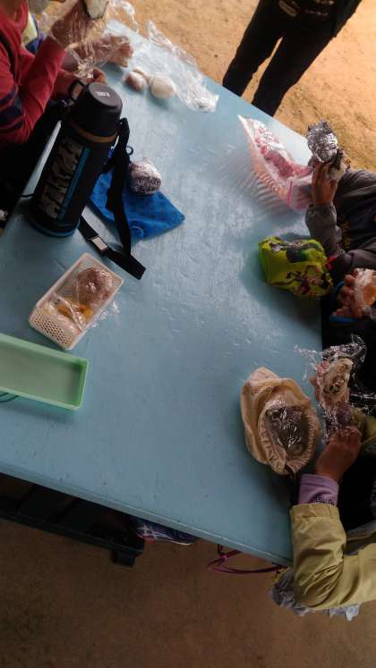 到着後,お家の方に作っていただいたお弁当を食べています。