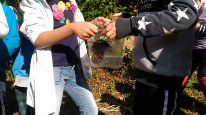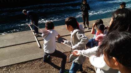 生き物が入っているのを確認すると,笑顔と歓声で大興奮です!