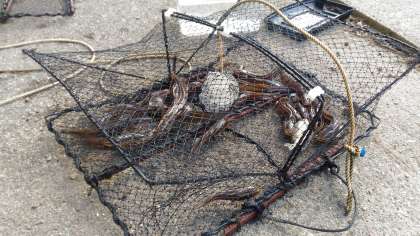 昨日,仕掛けておいたかごを引き上げます。