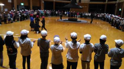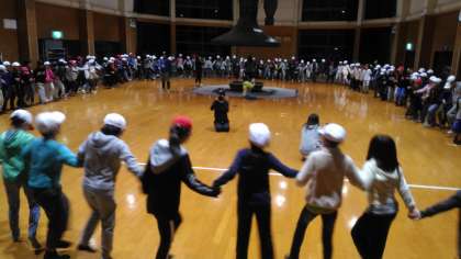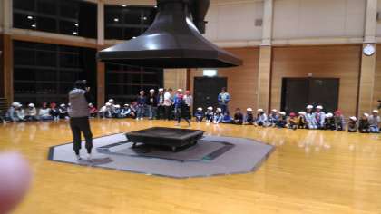 強風のため,途中からプレイホールでのキャンプファイヤーとなりました。