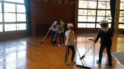 みさきの家での最後の食事となる朝ご飯を食べて,退所に向けて3日間の感謝を込めて,所内をきれいに掃除しました。