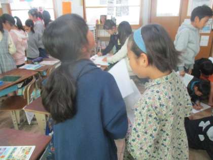 間の数に着目して学習を進めていきました。子ども達は,お互いの考えをしっかりと交流し,解決に導いていました。