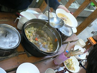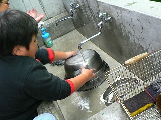 ご飯もおかずもそしておはしも自分で作ったもの,とってもおいしくいただきました。後片付けも協力してがんばりました。