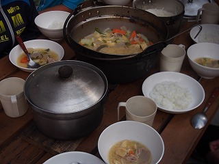 山の家にきて2回目の野外炊事です。みんな上手に豚汁を作ることができました。