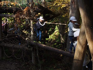 午後から「冒険の森(アスレチック)」に挑戦しました。難しいところもありましたが,楽しく活動しました。