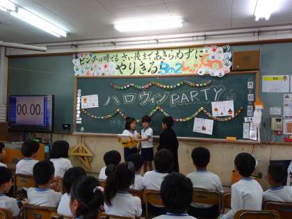 今日は,1週間遅れですが,ハロウィンパーティーをしました♪宝探しや,お化け屋敷,クイズなど,各係が出し物を出しました。衣装も作り,みんな協力して楽しいハロウィンパーティーになりました!