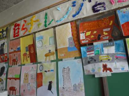 教室に作品が飾られると, たくさんの色があふれてきれいです。ぜひ背景にも注目していただきたいと思います。