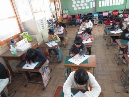 図画工作「まどをひらいて」で,カッターナイフを使って作品作りをします。