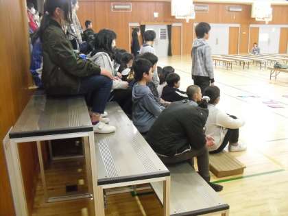 いよいよ卒業式の練習が始まりました。たけの子学級の6年生も,みんなと一緒に練習をします。今日は立つタイミングをみんなで確認し,練習しました。その後は6年生を送る会の練習も一緒にしました。